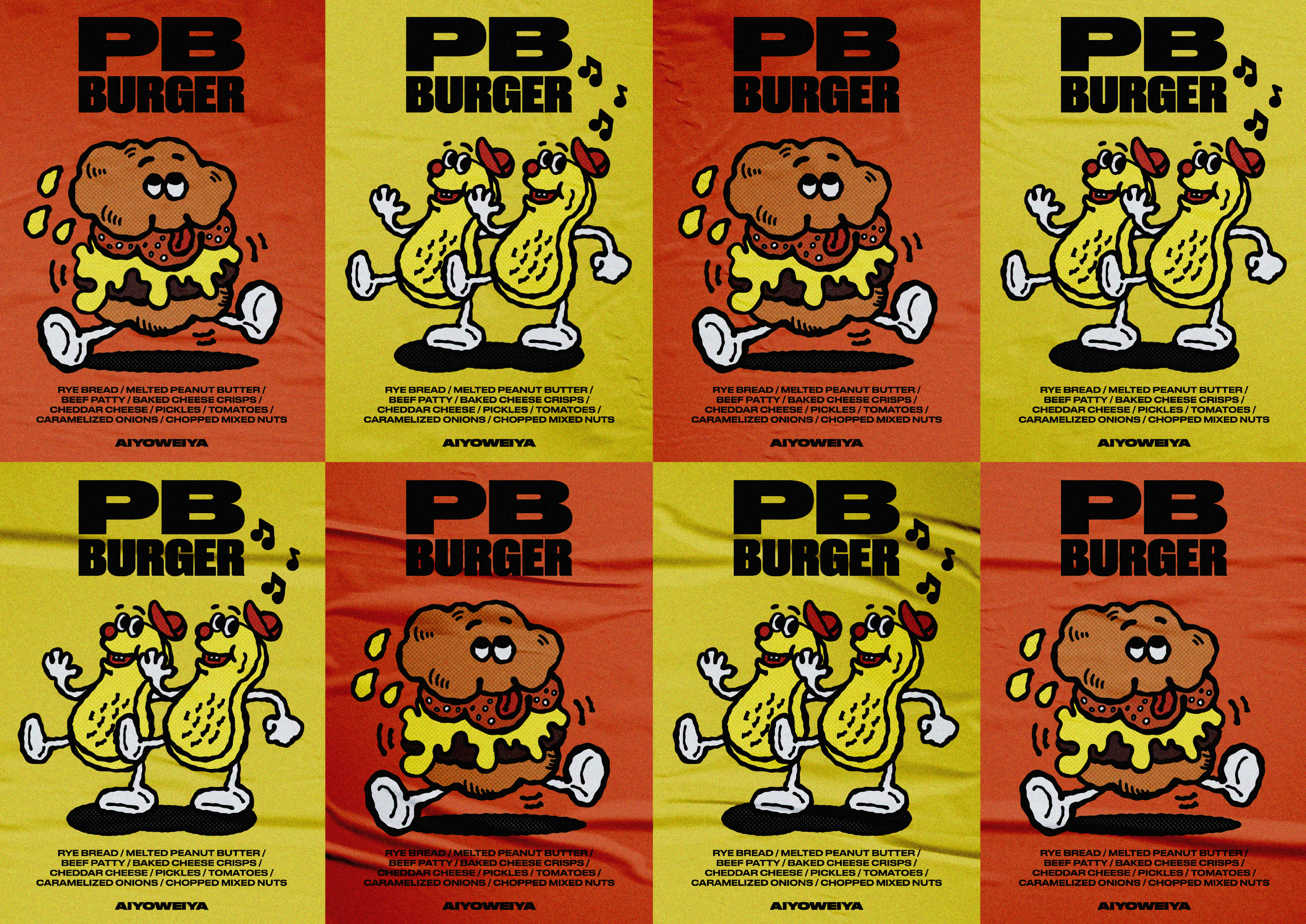 When hunger hits, grab a big, juicy burger! Life’s tough—but the joy of getting chubby is ours to create. Born from that spirit, AIYOWEIYA crafts irresistibly delicious handmade grilled burgers. Rich, tender, and playfully inventive, every bite is full of flavor and laughter. Our brand identity captures this meaty happiness with bouncy type and lively colors—bursting with energy, charm, and appetite appeal.